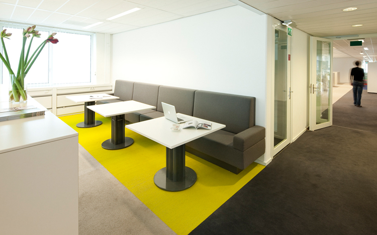 Sympas les nouveaux bureaux de la société Maxium récemment relookés par les designers de HofmanDujardin. Une ambiance studieuse imaginée comme un loft à usage d’habitation avec un coin cocooning composé de 2 canapés très enveloppants, un espace restauration avec une cuisine américaine et des zones de travails en open-space délimitées par de grands carrés de couleurs imprimés sur la moquette. Un endroit vraiment agréable pour travailler.