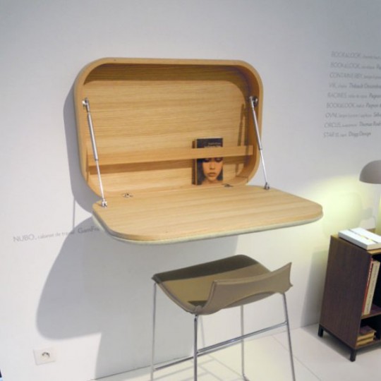 Au premier coup d’oeil, on pourrait croire qu’il s’agit d’une valise en bois. En fait, Nubo est un secrétaire ou plutôt un bureau d’appoint. Conçu en chêne naturel avec une finition en lainage bleu, ce bureau mural se transforme en oeuvre d’art monochrome une fois refermé. A noter que Nubo ne prend vraiment pas beaucoup de place, puisqu’il ne mesure qu’à peine 14 cm de profondeur, tout en étant fonctionnel avec un passe-câble intégré pour votre ordinateur portable ou votre tablette.