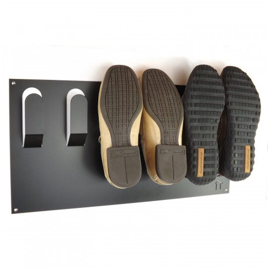 Ce système est une bonne solution pour gagner de la place. Il est de plus très pratique car il est facile d’accrocher vos paires de chaussures sur ce support mural. Si vous avez beaucoup beaucoup de chaussures, vous pouvez fixer plusieurs accroche-chaussures en enfilade sur vos mur… Et pourquoi vous faire un mur complet pour ranger toute votre collection de chaussures ?
